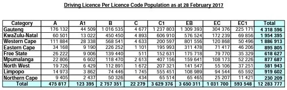 南非 eNATIS 駕照人數(shù)統(tǒng)計(2017 年 3 月)