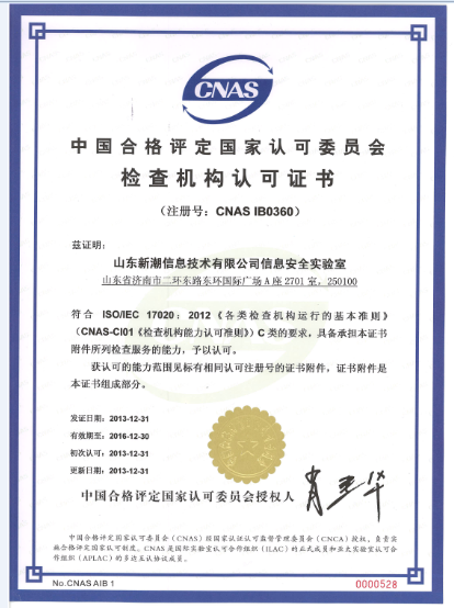 熱烈祝賀我公司獲得由中國(guó)合格評(píng)定國(guó)家認(rèn)可委員會(huì)頒發(fā)的檢驗(yàn)機(jī)構(gòu)認(rèn)可證書,此證書成為我公司的又一里程碑。