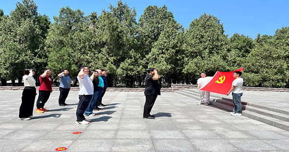通過參觀、重溫紅色道路,黨員們對沂蒙老區(qū)的革命精神有了更深、更透、更清晰的了解,進一步激發(fā)全體黨員的愛國熱情,堅定理想信念。黨和軍隊堅持人民至上,依靠人民、為了人民,因而人民感黨恩、聽黨話、跟黨走,這是沂蒙精神的核心、靈魂和最鮮明的特征。全體黨員在粟裕將軍墓前舉行了緬懷儀式、重溫入黨誓詞。